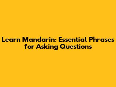 Practical Mandarin Question Examples for Everyday Use