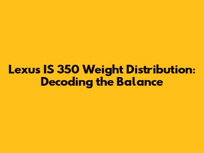 Lexus IS 350 Weight Distribution: Explained