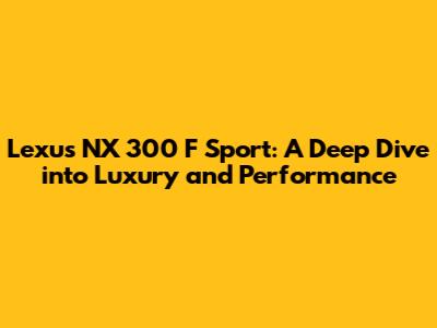 • How does the NX 300 F Sport handle? The NX 300 F Sport offers responsive steering, sport-tuned suspension, and a comfortable ride.
