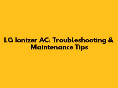 LG Ionizer AC: Troubleshooting & Maintenance Tips