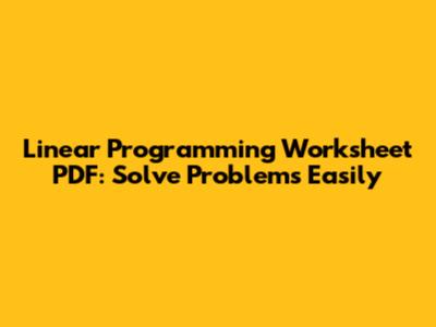 Linear Programming Worksheet PDF: Solve Problems Easily
