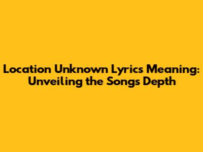 Location Unknown Lyrics Meaning: Unveiling The Song's Depth