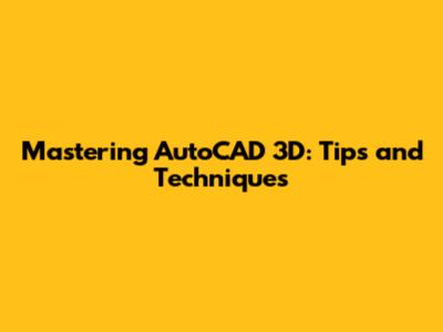 Mastering AutoCAD 3D: Tips And Techniques