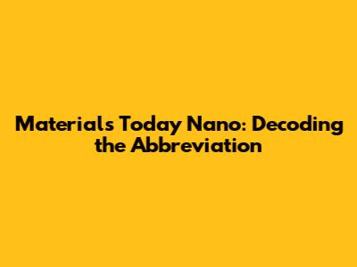 Materials Today Nano: Decoding The Abbreviation