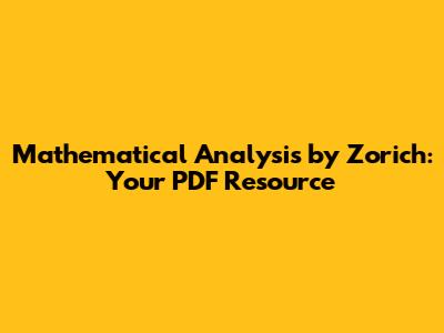 Mathematical Analysis By Zorich: Your PDF Resource