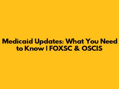 Medicaid Updates: What You Need To Know | FOXSC & OSCIS