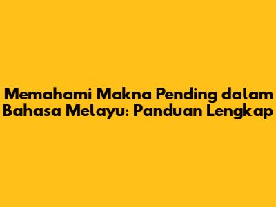 Makna 'pending' dalam bahasa Melayu sering kali menjadi sumber kebingungan, terutama bagi mereka yang sedang mempelajari bahasa ini atau yang sering berinteraksi dengan istilah-istilah teknis. Kata 'pending' sendiri berasal dari bahasa Inggris, yang berarti tertunda, menunggu, atau belum diproses. Dalam konteks bahasa Melayu, pemahaman terhadap makna ini sangat penting karena ia sering muncul dalam berbagai situasi, mulai dari urusan perbankan, teknologi, hingga administrasi. Mari kita selami lebih dalam untuk memahami apa sebenarnya yang dimaksud dengan 'pending' dan bagaimana ia digunakan dalam berbagai situasi.