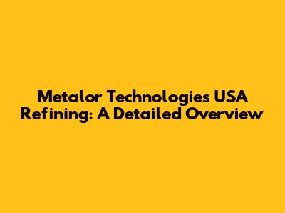 Metalor Technologies USA Refining: A Detailed Overview