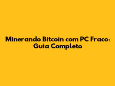 Minerando Bitcoin Com PC Fraco: Guia Completo