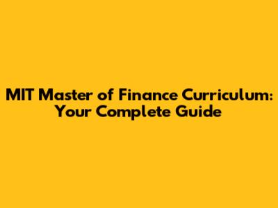 MIT Finance Masters Curriculum: A Deep Dive