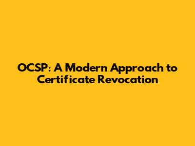 OCSP: A Modern Approach To Certificate Revocation