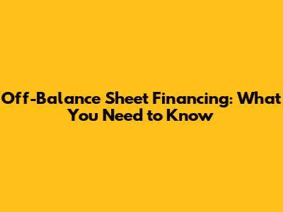Off-Balance Sheet Financing: What You Need To Know