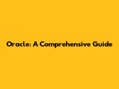 Oracle: A Comprehensive Guide