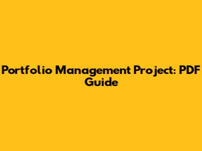If you're a student studying finance or economics, a portfolio management project PDF can be a valuable resource for completing assignments and research projects.