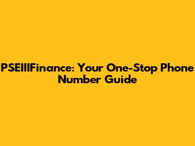 PSEIIIFinance: Your One-Stop Phone Number Guide