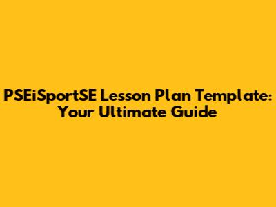 PSEiSportSE Lesson Plan Template: A Teacher's Best Friend