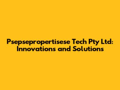 Psepsepropertisese Tech: Innovations And Solutions