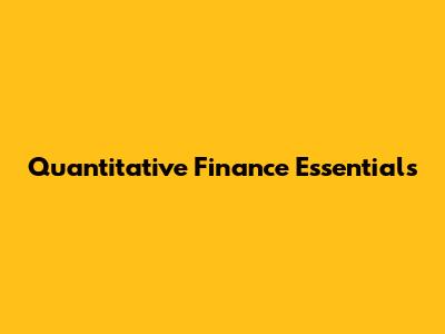 Quantitative Finance Essentials