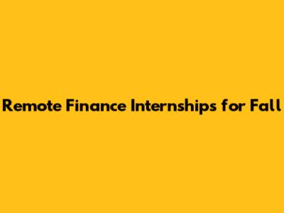 Remote Finance Internships For Fall
