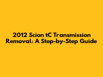 Scion TC (2012) Transmission Removal: A Step-by-Step Guide