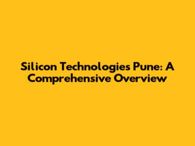 Silicon Technologies Pune: A Comprehensive Overview