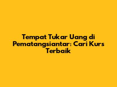 Tempat Tukar Uang Di Pematangsiantar: Cari Kurs Terbaik