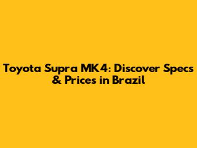 Hey guys! Are you ready to dive into the legendary Toyota Supra MK4 scene in Brazil? This iconic sports car has captured the hearts of enthusiasts worldwide, and Brazil is no exception. In this article, we're going to explore everything you need to know about the Supra MK4 in Brazil, from its specs and performance to its price and availability. So, buckle up and let's get started!