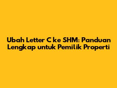 Mengubah Letter C ke Sertifikat Hak Milik (SHM) adalah langkah krusial bagi pemilik properti di Indonesia. Guys, tahukah kalian bahwa Letter C, sebagai dokumen kepemilikan tanah warisan dari sistem zaman kolonial, memiliki kelemahan yang signifikan? Dokumen ini tidak sekuat SHM dalam hal kepastian hukum dan nilai jual properti. Makanya, kalau kalian punya Letter C dan berencana untuk mengamankan aset properti, wajib banget memahami syarat, cara, dan biaya mengubah Letter C ke SHM.