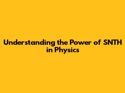 Understanding The Power Of SNTH In Physics