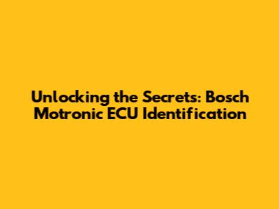 Unlocking The Secrets: Bosch Motronic ECU Identification