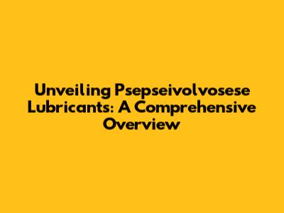 Unlocking The Secrets Of Psepseivolvosese Lubricants: Your Guide