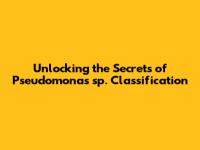 Unlocking The Secrets Of Pseudomonas Sp Classification