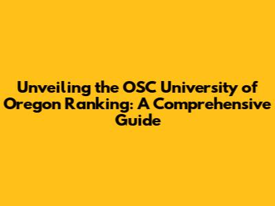 Unveiling The OSC University Of Oregon Ranking: A Comprehensive Guide