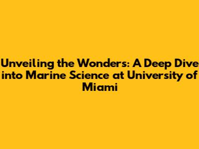 Unveiling The Wonders: A Deep Dive Into Marine Science At University Of Miami
