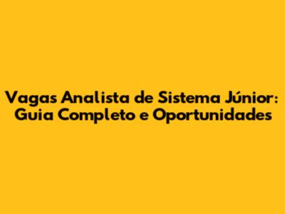 Vagas Analista De Sistema Júnior: Guia Completo E Oportunidades