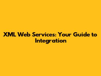 XML Web Services: Your Guide To Integration