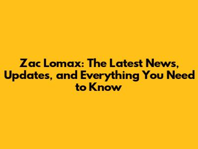 Zac Lomax: Latest News, Updates, And What You Need To Know